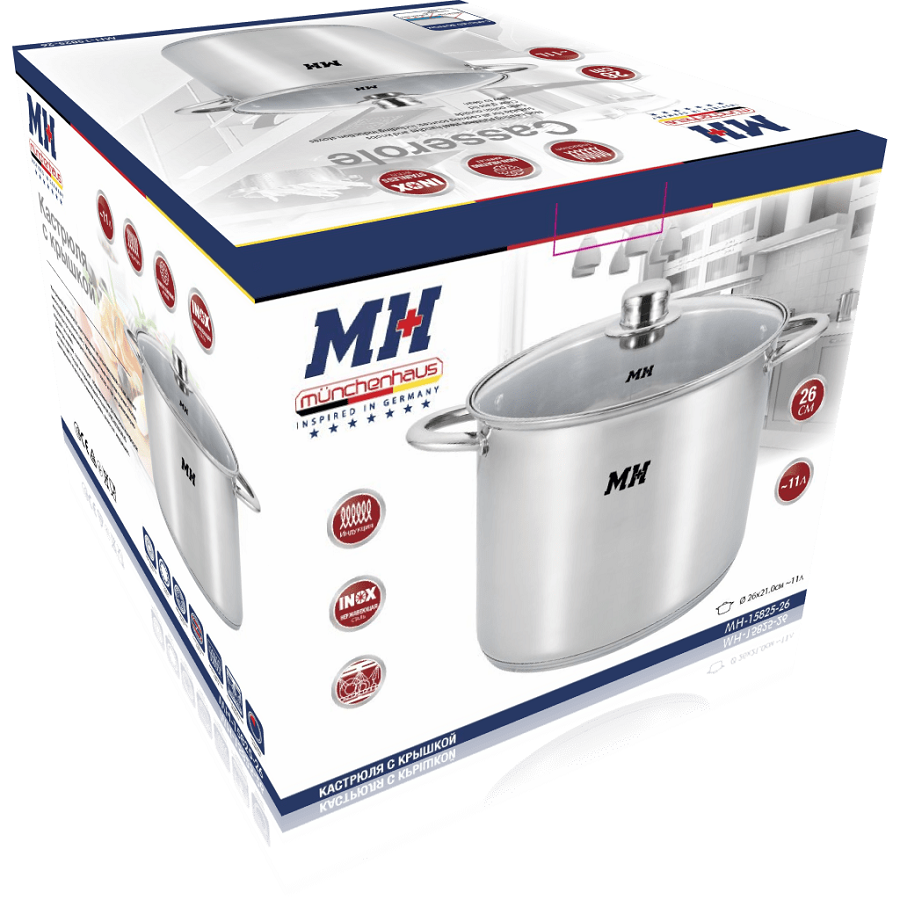 Кастрюля 11л Munchenhaus MH-15825-26: сравнение цен, характеристики, фото, актуальное наличие и цены.