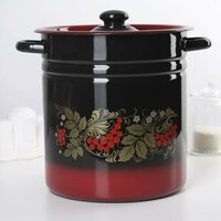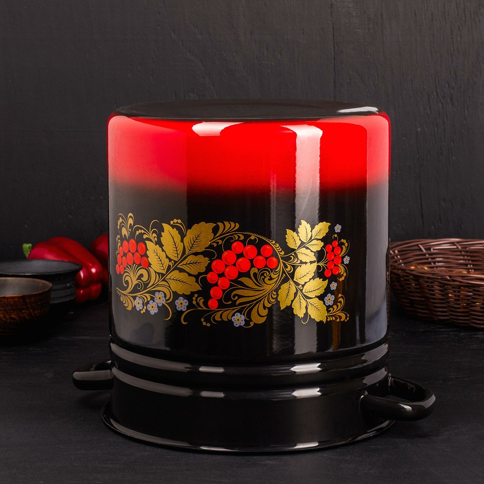 Кастрюля - бак эмалированная «Рябинушка», 12 л, d=24 см, цилиндрическая, цвет чёрно-красный, ручка микс (комплект из 2 шт)