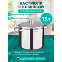 Кастрюля 15 л катунь, гретта, KT04-D-150, зеркальная полировка, нерж.сталь, без покрытия, крышка металл