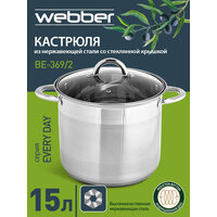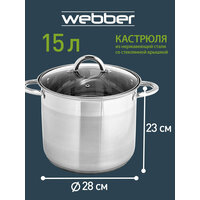 Купить Кастрюля 15 литров, 28×23 см, из нержавеющей стали со стеклянной крышкой WEBBER BE-369/2 с доставкой по всей России.