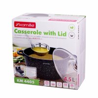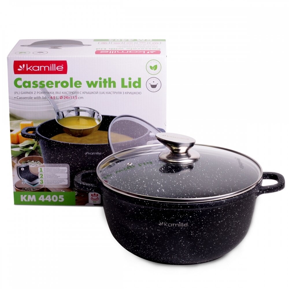 Купить Кастрюля 24*11,5cm из литого алюминия с антипригарным покрытием ‘чёрный мрамор’ и стекляной крышкой Kamille 4405 с доставкой по всей России.