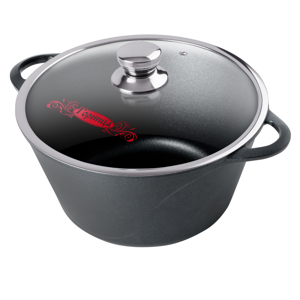 Кастрюля антипригарная литая 8,0л со стеклянной крышкой Гранит ТМ Горница