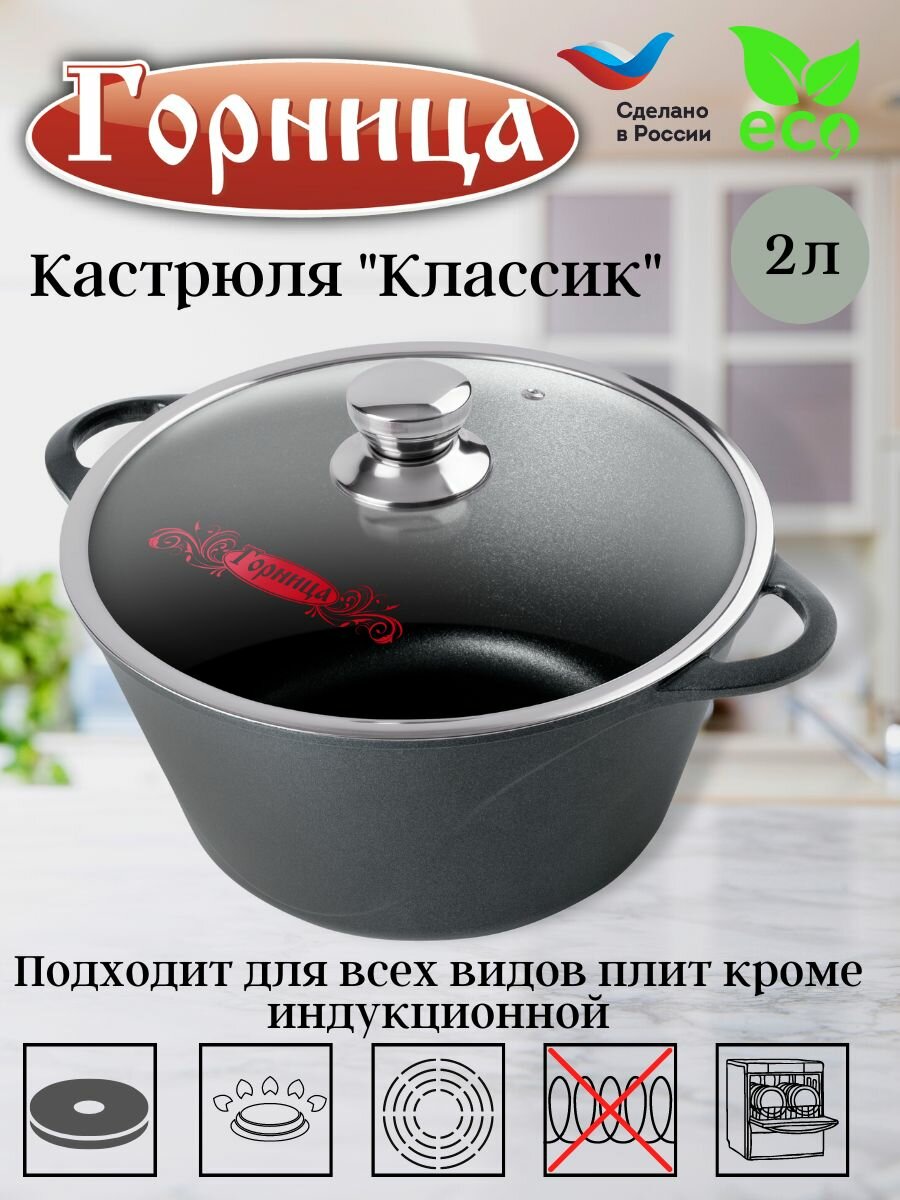 Кастрюля Горница 2л, литые ручки, с крышкой, (п/у), серия «Классик»