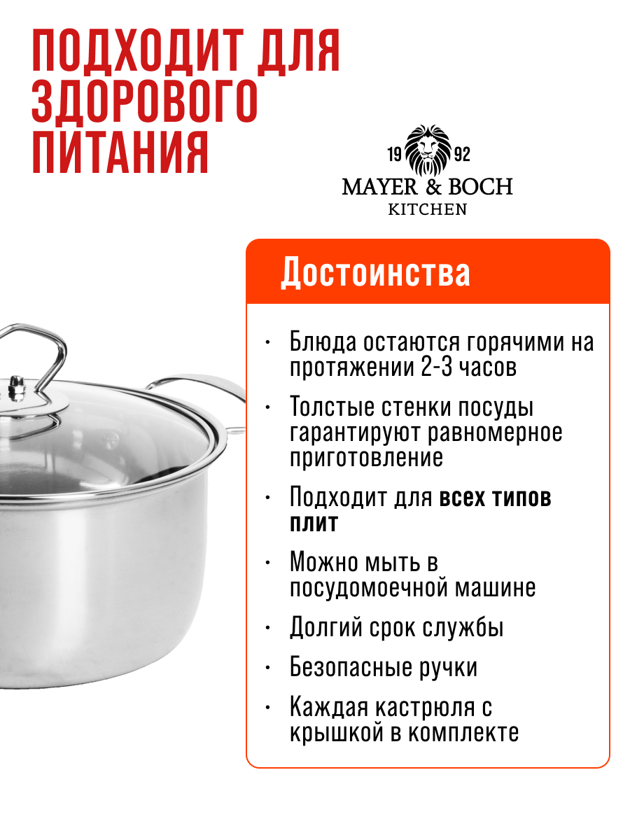 Купить Кастрюля 3,6 л нержавеющая сталь, с крышкой MAYER&BOCH 30882 с доставкой по всей России. Кастрюля 3,6 л нержавеющая сталь, с крышкой MAYER&BOCH 30882: сравнение цен, характеристики, фото, актуальное наличие и цены.