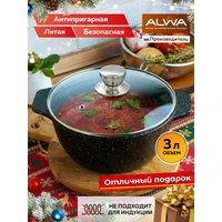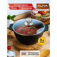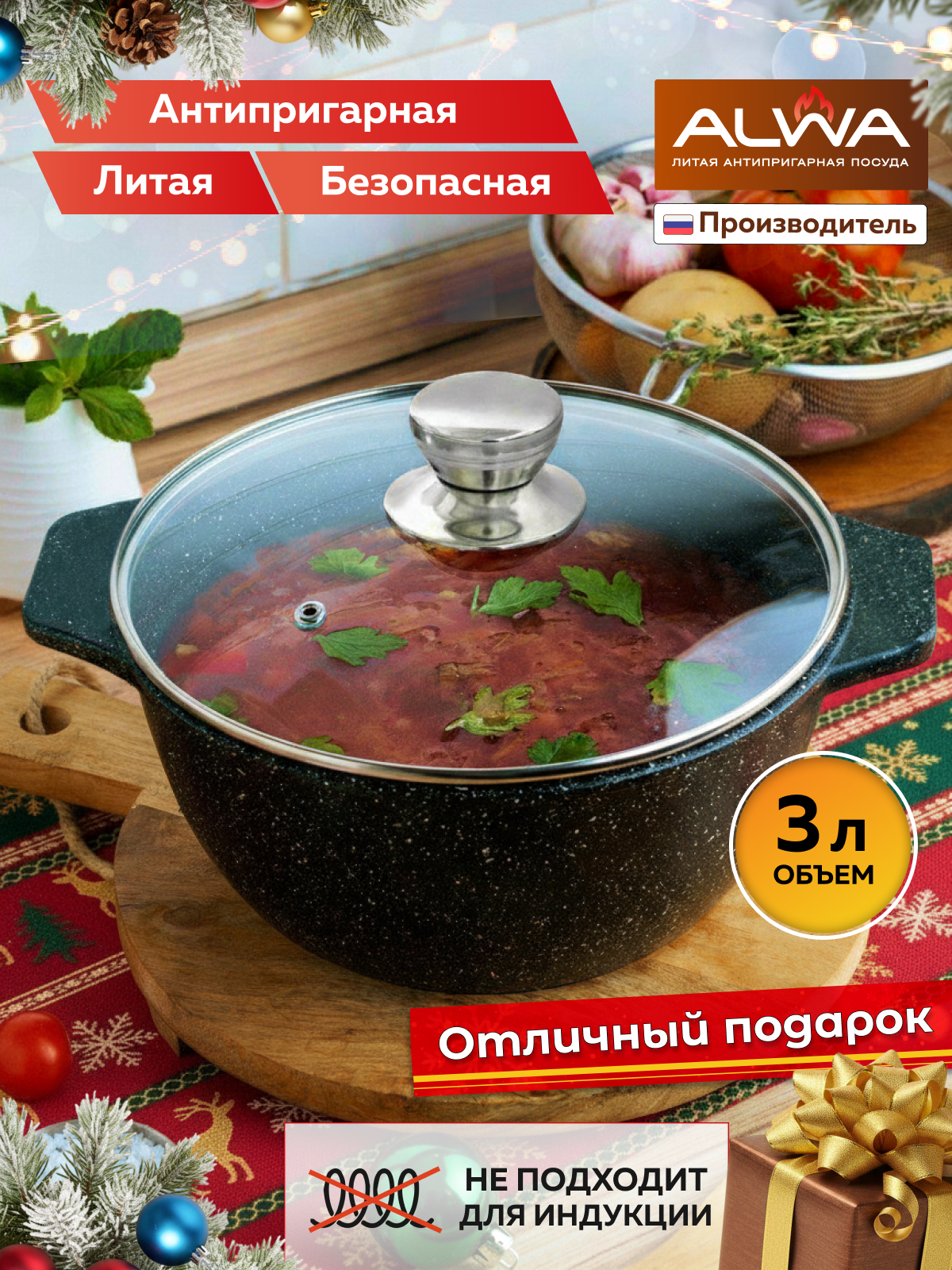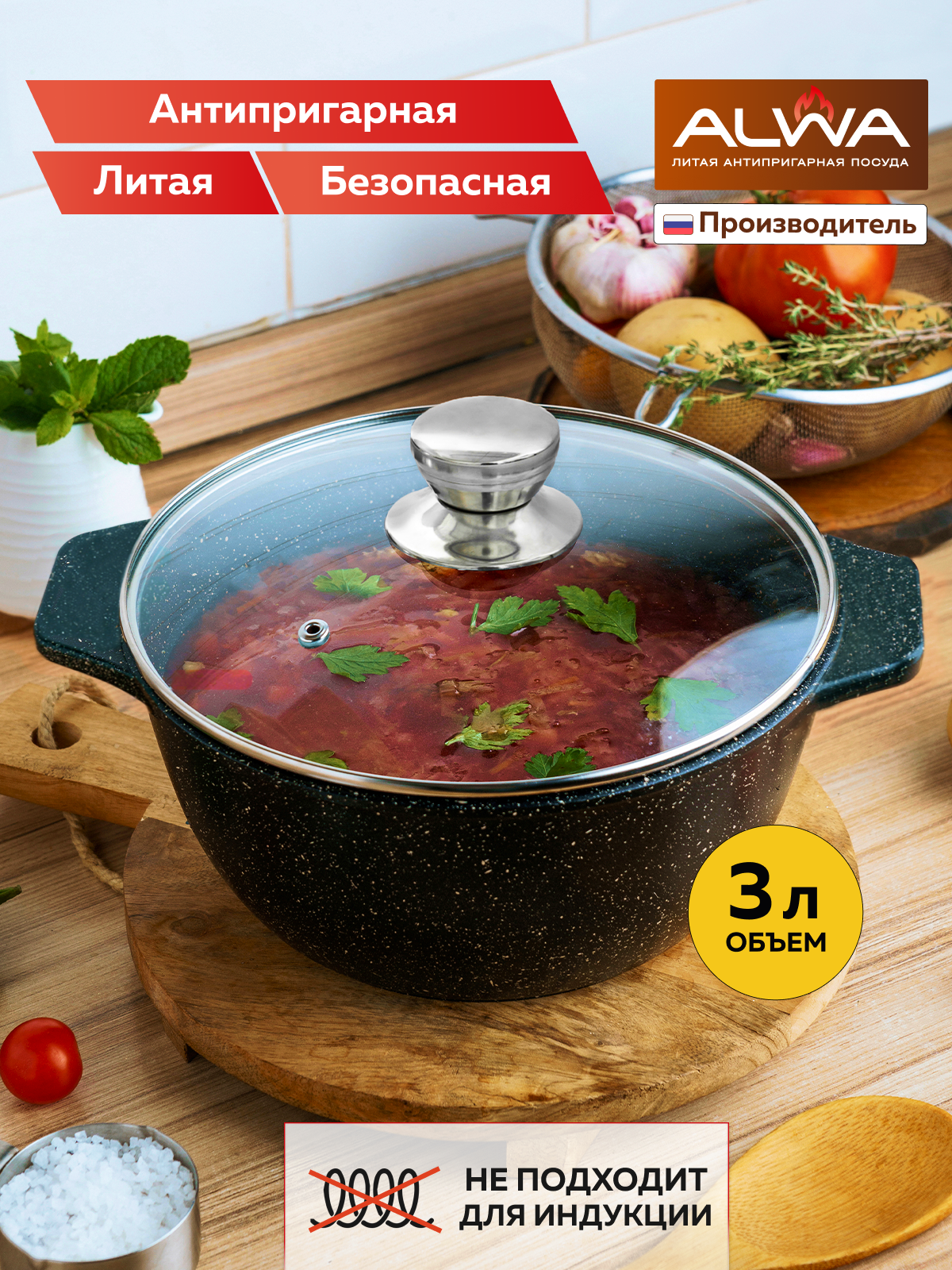Кастрюля 3 л с крышкой антипригарная от ТМ "Alwa" - это прочная и легкая литая алюминиевая посуда с антипригарным покрытием на водной основе.