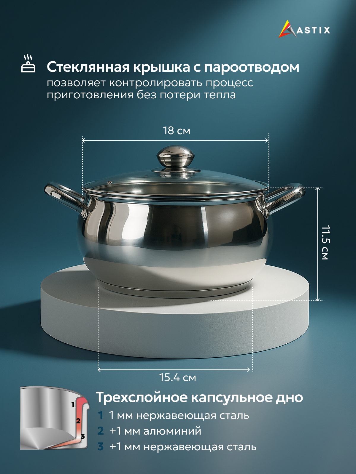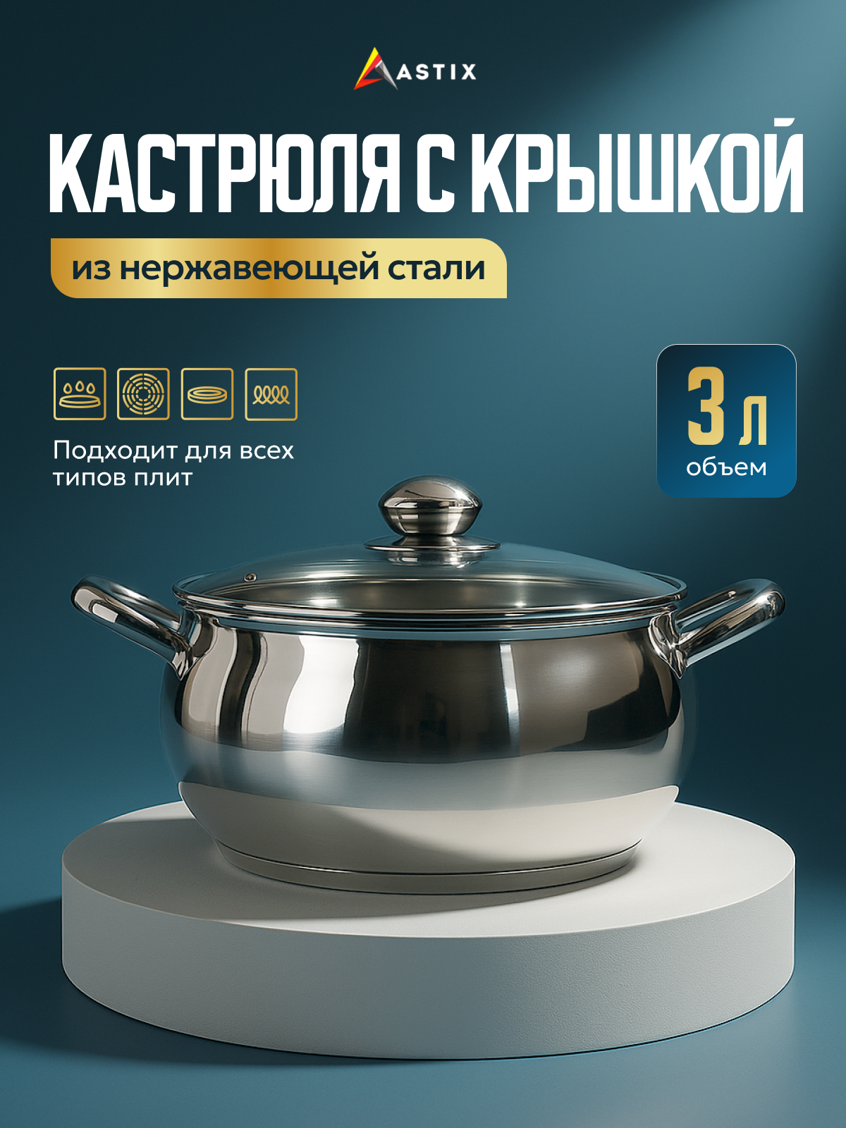 Купить Кастрюля 3 литра с крышкой из нержавеющей стали, капсульное дно с доставкой по всей России. Кастрюля 3 литра с крышкой из нержавеющей стали, капсульное дно: сравнение цен, характеристики, фото, актуальное наличие и цены.