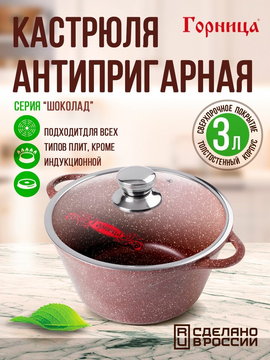 Кастрюля антипригарная литая 3,0л стеклянная крышка Шоколад ТМ Горница: сравнение цен, характеристики, фото, актуальное наличие и цены.