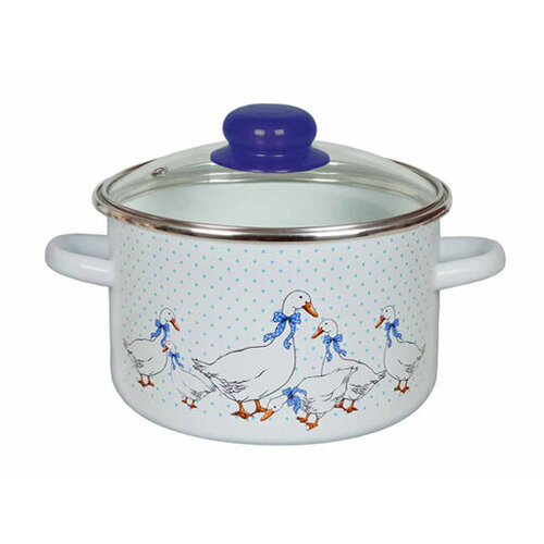 Кастрюля эмалированная 4л со стеклянной крышкой Гуси