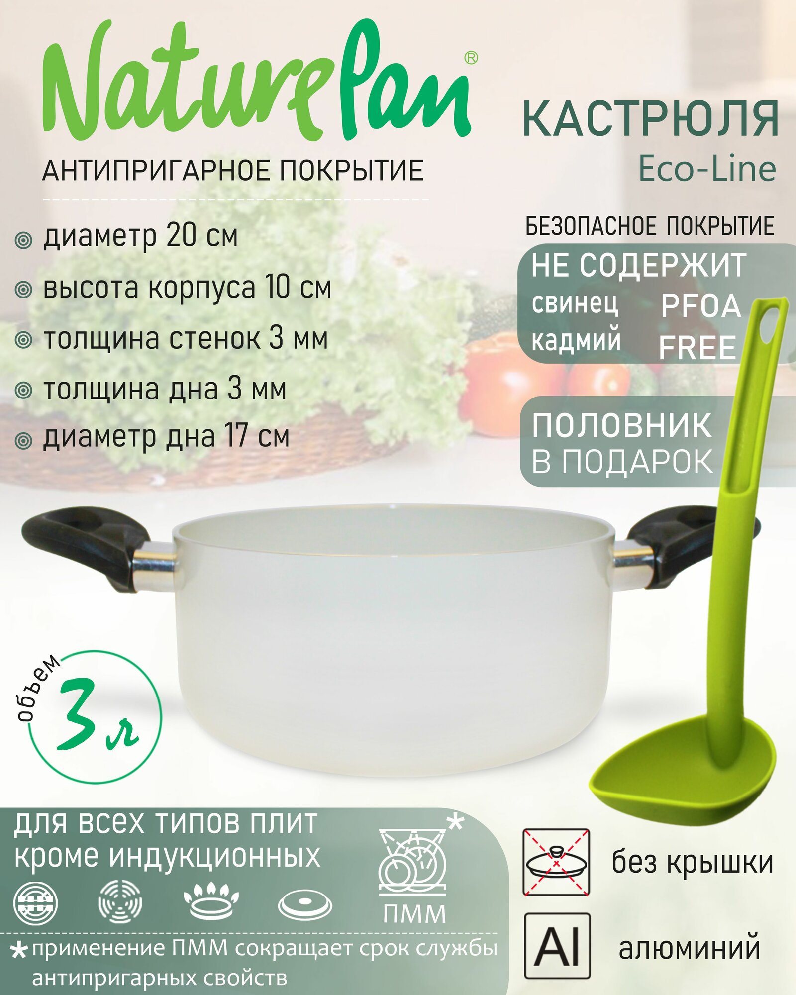Купить Кастрюля 3л, без крышки, с антипригарным керамическим покрытием, половник в подарок, NaturePan Eco-Line с доставкой по всей России. Кастрюля 3л, без крышки, с антипригарным керамическим покрытием, половник в подарок, NaturePan Eco-Line: сравнение цен, характеристики, фото, актуальное наличие и цены.