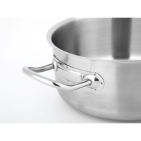 Кастрюля 4л, 24см подходит как для домашнего, так и профессионального использования. Она станет хорошим выбором для гостиниц, кафе, ресторанов и других заведений общепита. Изделие, выполненное из прочной и долговечной нержавеющей стали, оснащено двумя удобными ручками и сэндвич-дном, которое обеспечивает оптимальное распределение тепла и его накопление. В такой кастрюле можно варить и тушить различные пищевые продукты. Она подходит для приготовления супов, каш, компотов и морсов. Вымыть изделие можно как вручную, так и в посудомоечной машине.