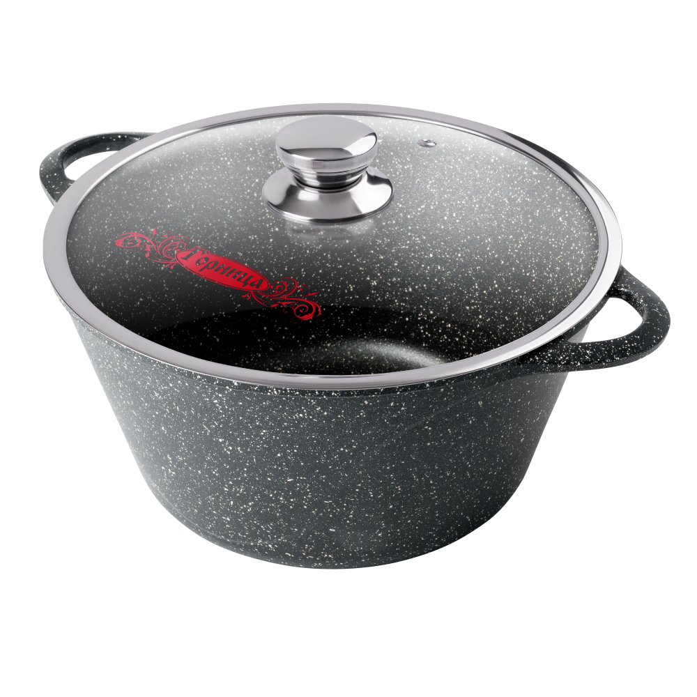 Кастрюля антипригарная литая 8,0л со стеклянной крышкой Гранит ТМ Горница