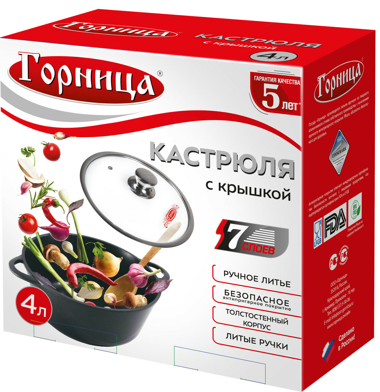 Кастрюля Горница 4л, литые ручки, с крышкой, (п/у), серия «Гранит»