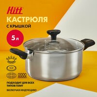 Купить Кастрюля 5 литров Hitt, из нержавеющей стали, с крышкой, для индукционных плит с доставкой по всей России.