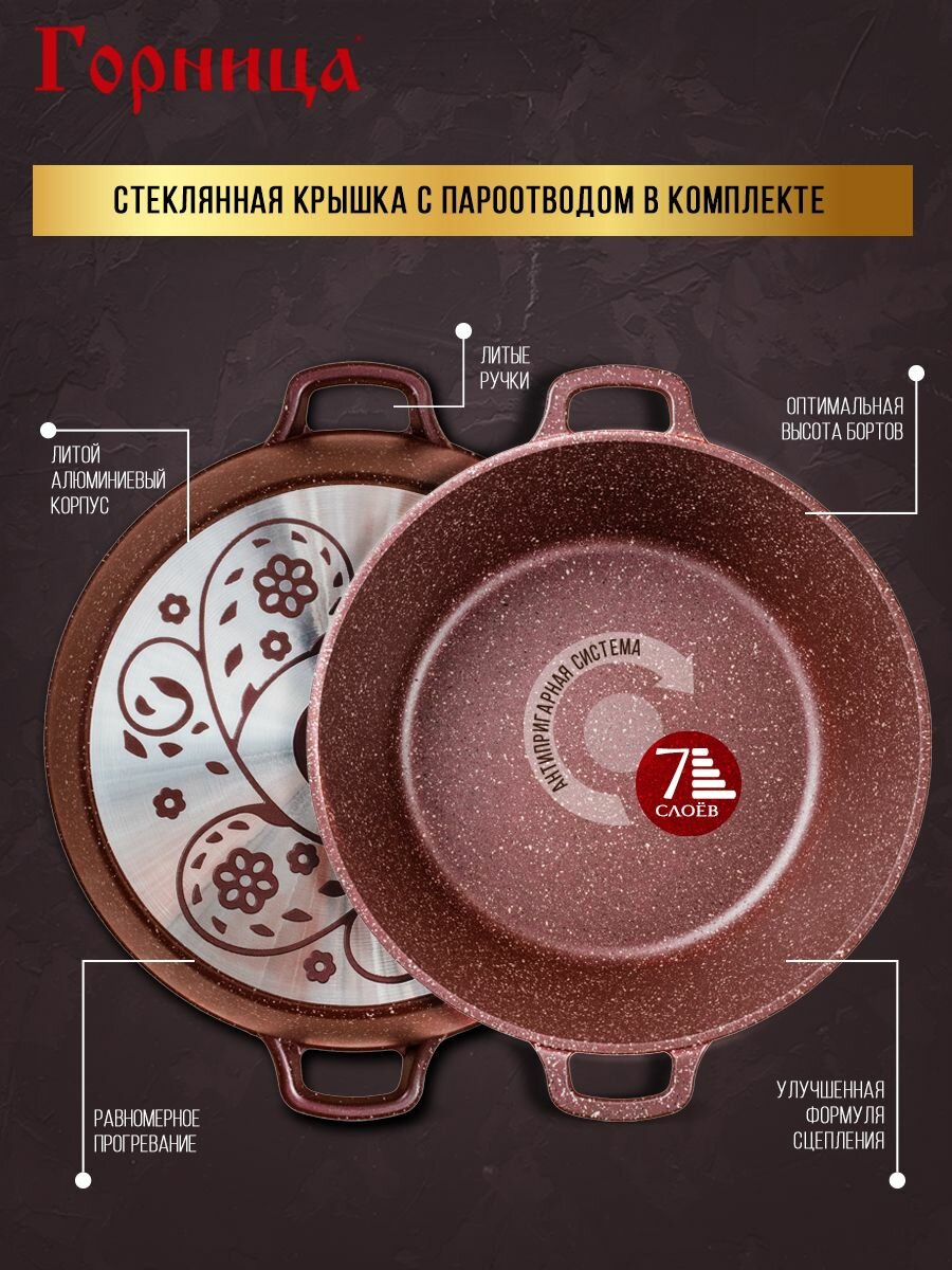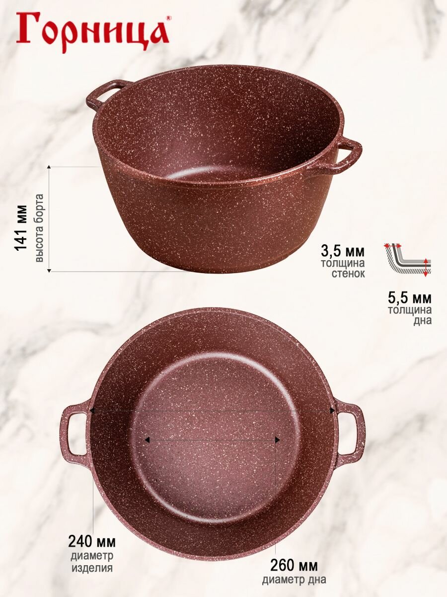 Кастрюли марки «Горница» — это высококачественная посуда из литого алюминия с антипригарным покрытием. Алюминий хороший проводник тепла, поэтому еда в кастрюлях «Горница» готовится быстрее. За счет антипригарного покрытия ваша еда не подгорит и в кастрюлях марки «Горница» можно готовить с минимальным количеством масла. Благодаря толстым стенкам и дну, кастрюли марки «Горница» не деформируются и прослужат Вам долго.