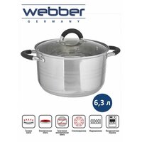 Купить Кастрюля 6,3 л, 24 см, из нержавеющей стали со стеклянной крышкой WEBBER BE-199/2 с доставкой по всей России.