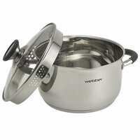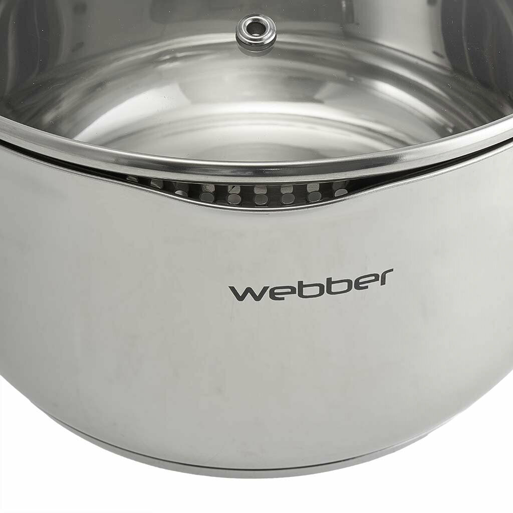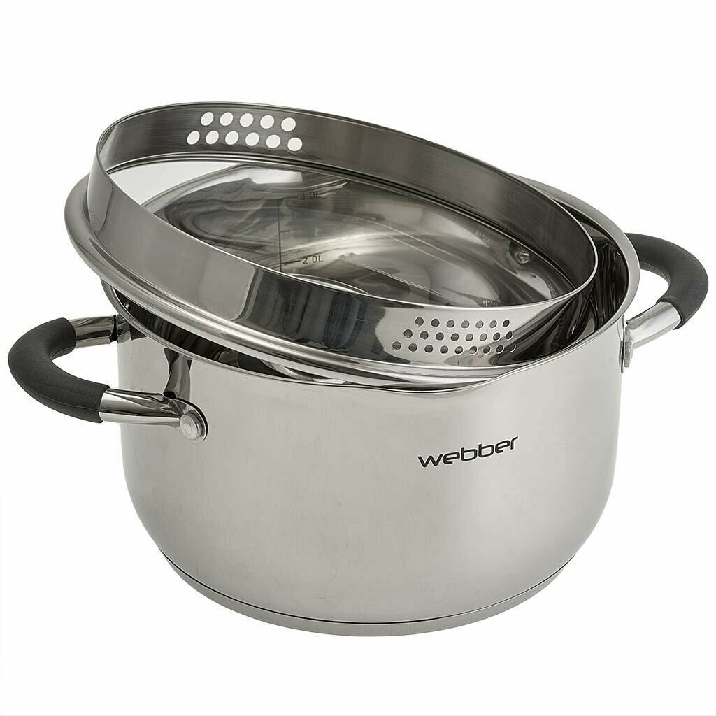 Кастрюля 6 л, 24 см, из нержавеющей стали со стеклянной крышкой с отверстиями для слива Webber BE-375/2: сравнение цен, характеристики, фото, актуальное наличие и цены.