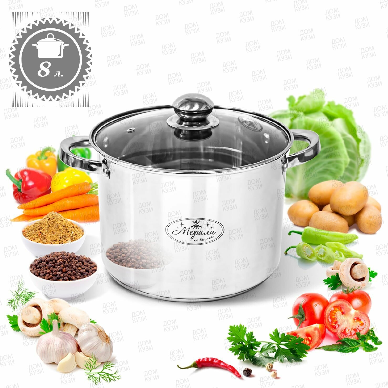 Большая кастрюля с толстым дном и ненагревающимися ручками Мерали. Кастрюля 8 литров из нержавеющей стали со стеклянной крышкой 24 см, высота борта 18 см. С мерной шкалой внутри. Толщина дна 7 мм, стенок - 1 мм. Идеальное решение для сезонных заготовок и закруток, больших застолий или просто для большой компании. Преимущество данной посуды - это толстое дно 7 мм, клепанные ручки, крышка с металлическим ободком и пароотводом и конечно мерная шкала ну и конечно же большой объем. Кастрюля мечта для хозяйки! Утолщенное капсульное дно обеспечивает равномерное распределение тепла и быстрый нагрев содержимого, избегая пригорания пищи. Клепаные ручки термокастрюли не скользят и не нагреваются в процессе приготовления пищи. Крышка из термостойкого стекла с отверстием для отведения пара выдерживает резкий перепад температур и обладает высокой термоустойчивостью. Кастрюля из нержавеющей стали имеет внутреннюю шкалу определения объема жидкости, что ускоряет процесс приготовления пищи. Посуда подходит для использования на любых типах плит, включая индукционные. Кастрюлю из нержавейки можно мыть в посудомоечной машине. Набор кастрюль для индукционной плиты невероятно удобны в использовании, за ними легко и просто ухаживать. Ненагревающиеся ручки позволяют сливать жидкость без использования прихваток, а стеклянная прозрачная крышка поможет вам наблюдать за процессом приготовления. Кастрюля 8 литров с толстым дном надолго сохранит тепло ваших блюд. Набор наших кастрюль подходят для варки и тушения. Стеклянная посуда очень удобна для приготовления первых и вторых блюд, а так же для сезонных заготовок. Идеально подойдет вам как походная посуда. Соберите себе набор посуды из нержавеющей стали из нашего ассортимента серии Белиссимо. Кастрюля 8 литров с крышкой идет в подарочной коробке, поэтому будет отличным подарком для Вас и ваших близких по любому поводу и на любой праздник! Посуда набор Мерали станет самым лучшим подарком и помощником на вашей кухне. Просьба обратить внимание, что на коробке и в описании указан заводской (общий) объем кастрюли, который отличается от рабочего (полезного) на + 0,5 литров в зависимости от литража кастрюль. Просим это учитывать при покупке любых кастрюль и наборов. Лучший подарок подруге девушке любимой сестре дочке папе брату другу парню коллеге соседке соседу любимому свекрови тёще на День Рождения 8 Марта 14 февраля просто так Пасха 9 мая новоселье переезд свадьба годовщина юбилей. Прекрасный подарок на любой Праздник: 14 Февраля, 23 Февраля, 8 Марта, День Рождения для мамы, папы, дедушки, бабушки, сыну, дочери, мужу, жене, девушки, парня.