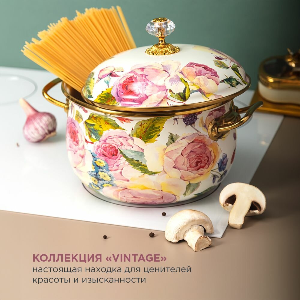 Кастрюля эмалированная с крышкой, серия винтаж, 3,8л, диаметр 20см Agness. Бренд Agness в международном сотрудничестве с европейскими производителями представляет серию «Винтаж».