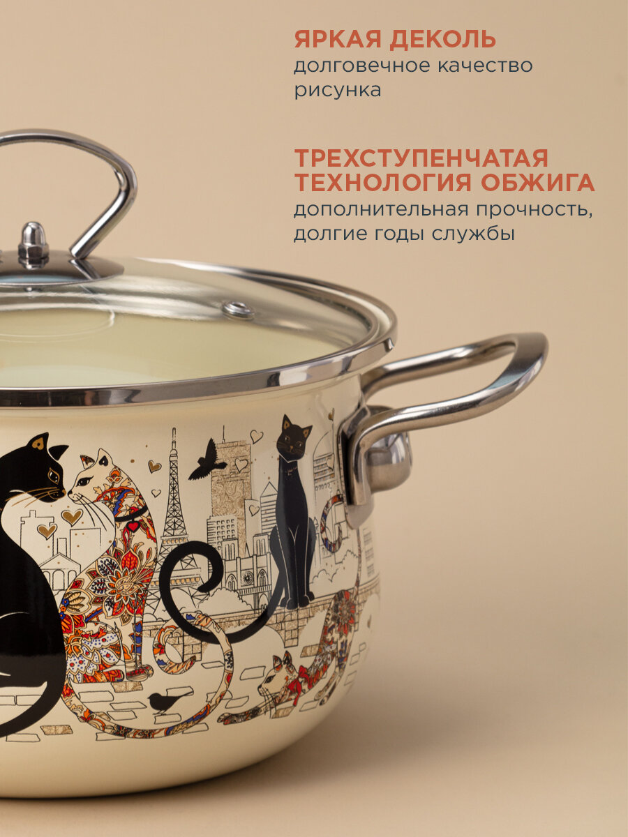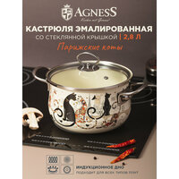 Кастрюля Agness «Парижские Коты», 2,8 л, для всех видов плит, диаметр 20 см, эмалированная: сравнение цен, характеристики, фото, актуальное наличие и цены.