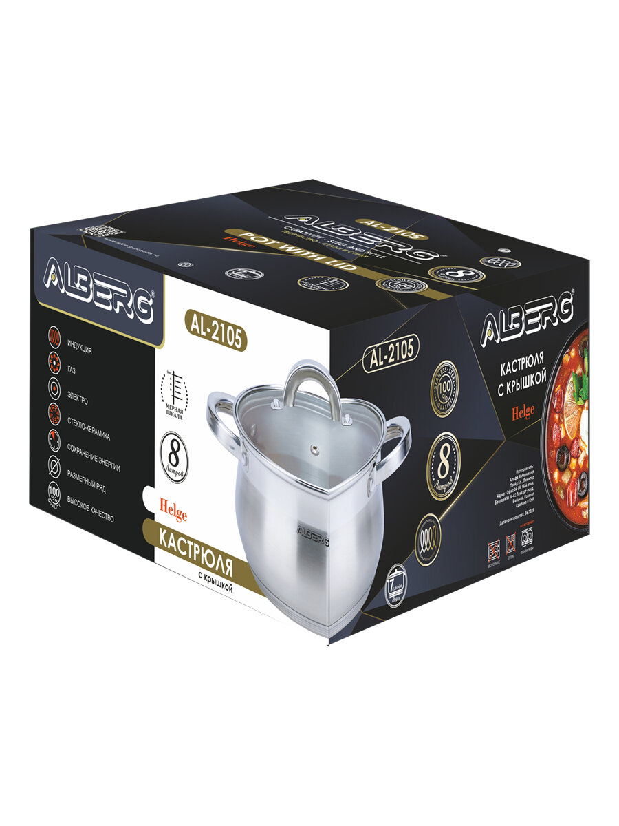 Кастрюля ALBERG AL-2105, серебристый: сравнение цен, характеристики, фото, актуальное наличие и цены.