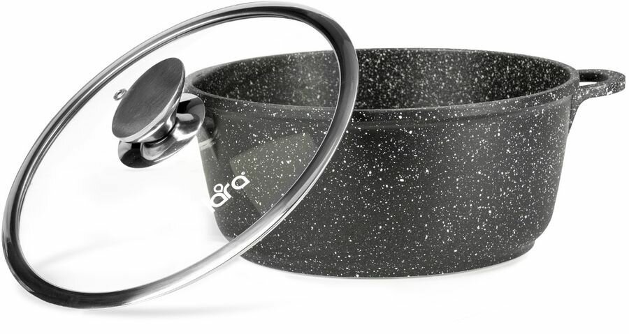 Мрамор – это идеальный акцент в дизайне, а кастрюли LARA серии «Rio» – это идеальная посуда высокого качества для ежедневного приготовления блюд. Кастрюли этой серии позволят получить не только новый опыт во взаимодействии с посудой, но и превосходный результат взаимодействия с ней. Серия выполнена из литого алюминия и обладает прекрасными теплопроводными свойствами. Прочное антипригарное покрытие с минеральными частицами надежно защищает дно и стенки от повреждений. Крышка с паровыпуском изготовлена из жаропрочного стекла, имеет стальной обод и удобную ручку G-формы. Индукционное дно подходит для всех типов плит.