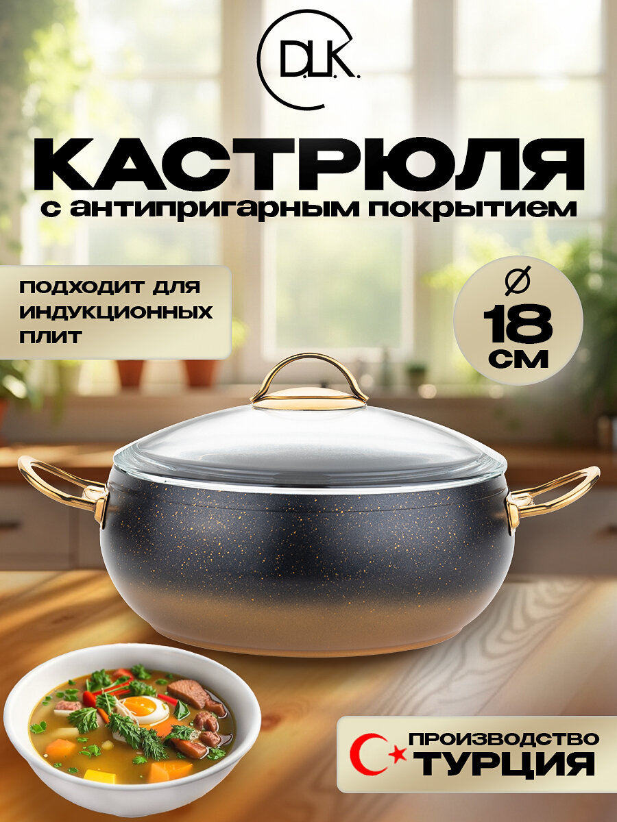 Кастрюля антипригарная 18 см 2 л с крышкой для всех плит ДЛК: сравнение цен, характеристики, фото, актуальное наличие и цены.