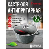 Купить Кастрюля антипригарная литая 2,0л со стеклянной крышкой Гранит ТМ Горница с доставкой по всей России.