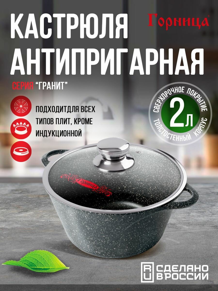Кастрюля антипригарная литая 2,0л со стеклянной крышкой Гранит ТМ Горница: сравнение цен, характеристики, фото, актуальное наличие и цены.