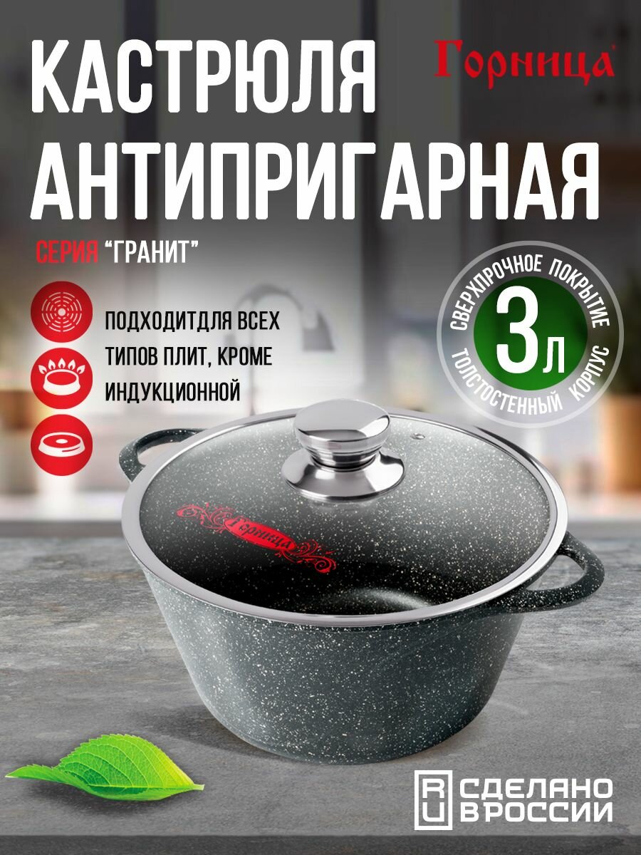 Купить Кастрюля антипригарная литая 3,0л со стеклянной крышкой Гранит ТМ Горница с доставкой по всей России. Кастрюля антипригарная литая 3,0л со стеклянной крышкой Гранит ТМ Горница: сравнение цен, характеристики, фото, актуальное наличие и цены.