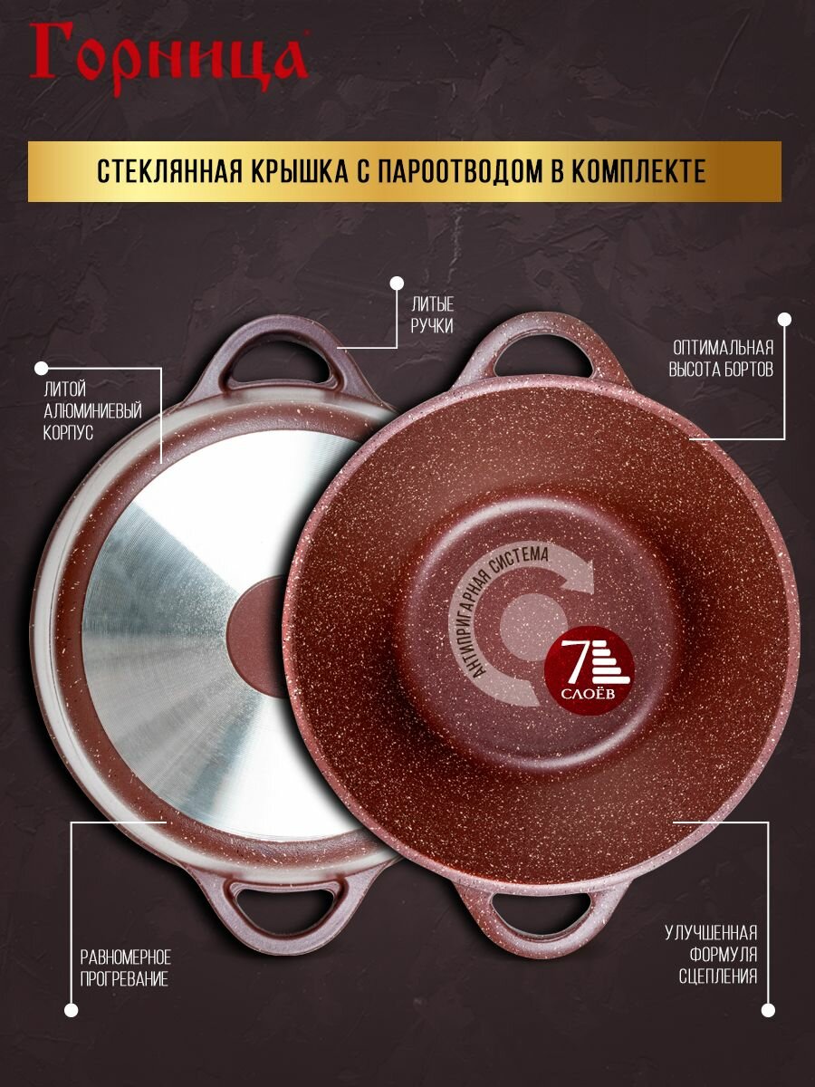 Кастрюля антипригарная литая 4,0л стеклянная крышка Шоколад ТМ Горница: сравнение цен, характеристики, фото, актуальное наличие и цены.