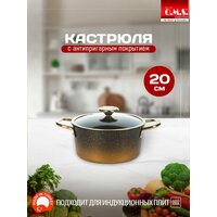 Кастрюля антипригарная с крышкой 20 см для индукционной плиты