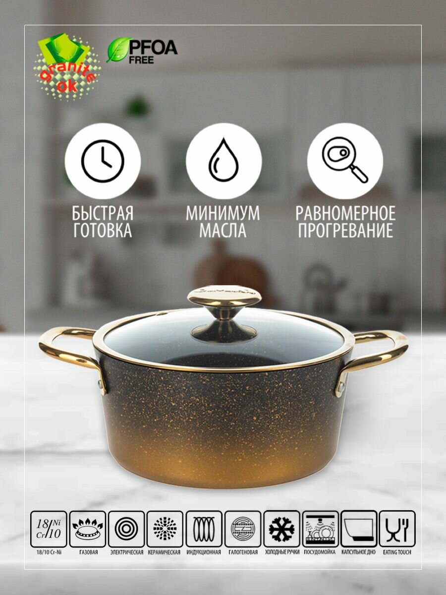 Кастрюля антипригарная с крышкой 22 см для индукционной плиты: сравнение цен, характеристики, фото, актуальное наличие и цены.