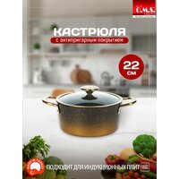 Кастрюля антипригарная с крышкой 22 см для индукционной плиты