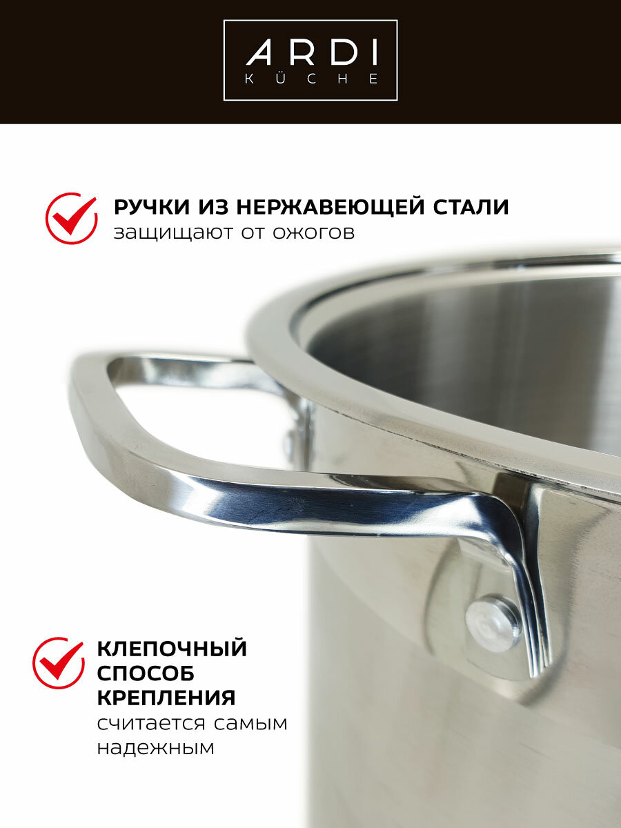 Кастрюля ARDI KUCHE AR-10L из нержавеющей стали со стеклянной крышкой, 10 л: сравнение цен, характеристики, фото, актуальное наличие и цены.