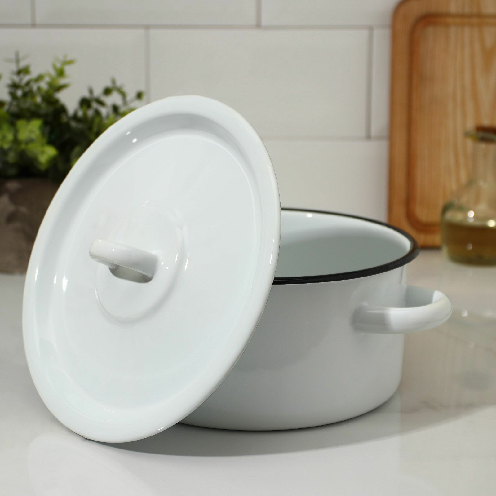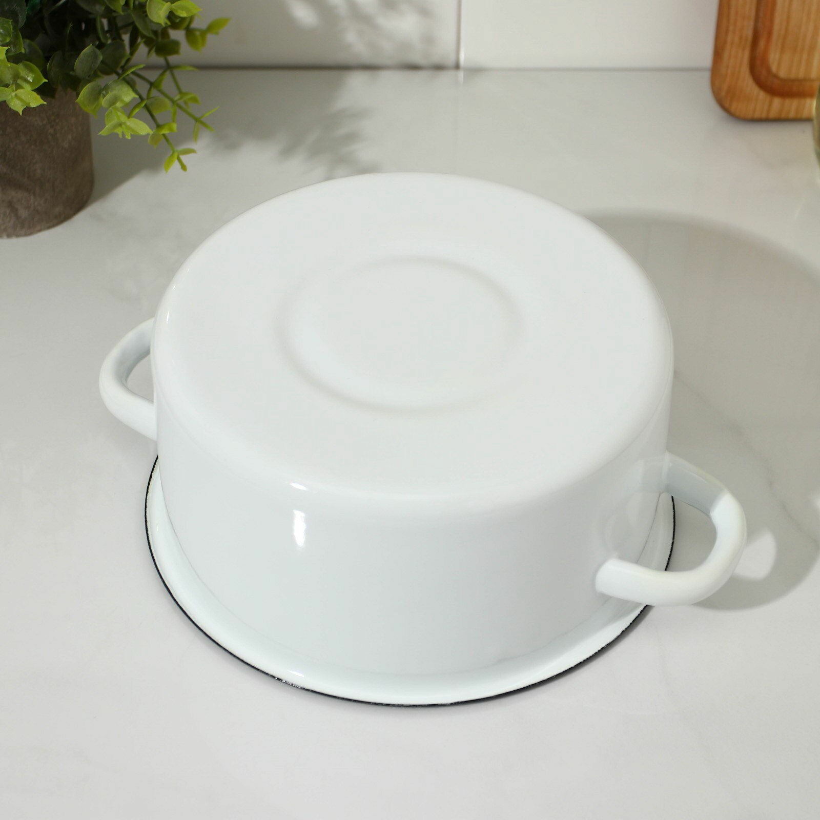 Кастрюля цилиндрическая объемом 2 литра изготовлена из прочной нержавеющей стали, покрытой равномерным слоем пищевой эмали. Это обеспечивает стойкость к коррозии и равномерное распределение тепла, что важно для приготовления разнообразных блюд.