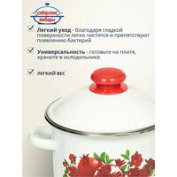 Кастрюля эмалированная 2 л Сибирские товары Гранатовый сок с крышкой, белая, для всех плит