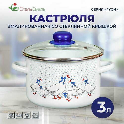 Купить Кастрюля эмалированная 3л со стеклянной крышкой Гуси с доставкой по всей России. Кастрюля эмалированная 3л со стеклянной крышкой Гуси: сравнение цен, характеристики, фото, актуальное наличие и цены.