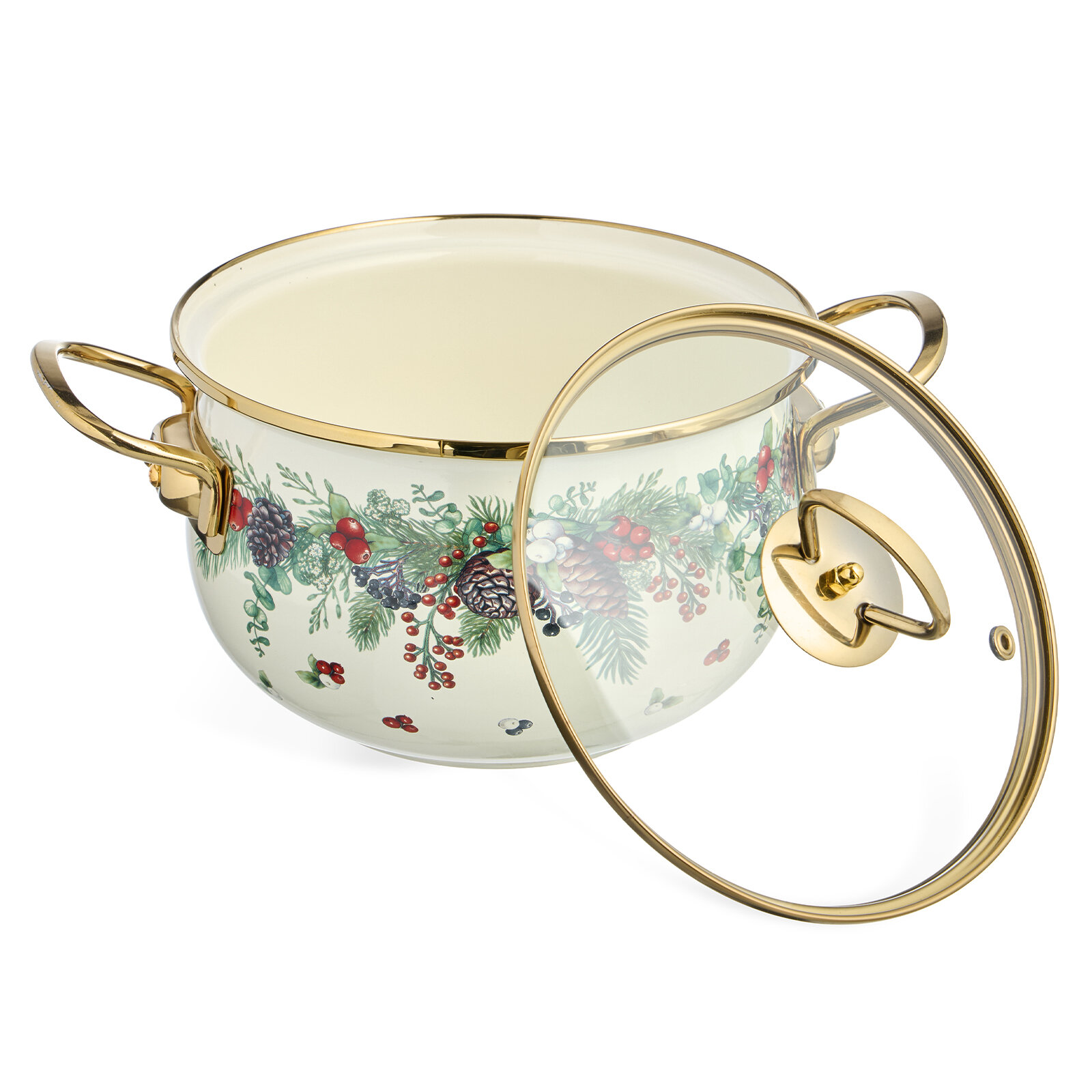 Купить Кастрюля эмалированная agness со стеклянной крышкой серия celebration, 2.8 л, 20*12 см KSG-943-084 с доставкой по всей России.