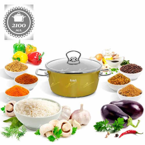 Эмалированная высокая кастрюля 2,1 литров со стеклянной прозрачной крышкой из жаропрочного стекла универсальный набор кухонных принадлежностей для готовки пищи в каждом доме. Легкая термостойкая кастрюля 5 л станет удачной альтернативой инвентарю для кухни из гранита чугуна керамики мрамора и алюминия. Небольшая металлическая кастрюля 2,1 литров на своей термостойкой крышке из стекла, имеет ободок из нержавеющей стали и отверстие для отвода пара, благодаря чему, время на приготовление значительно сокращается и блюдо томится в собственном соку, максимально сохраняя свою пользу и витамины. А эргономичная форма и эмалевое покрытие интересного цвета, делает маленькую кастрюльку из литого металла красивым, стильным предметом для сервировки стола, который прекрасно впишется в интерьер Вашей столовой. Толстостенная кастрюля из нержавейки идеальна для хранения и варки супов спагетти пельменей лапши, компота и морса, для жарки и запекания мяса как в духовке, так и на индукции, для тушения овощей, плова, соуса и маринования шашлыка для выезда на природу.