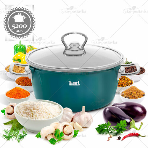 Эмалированная высокая кастрюля 5,2 литров со стеклянной прозрачной крышкой из жаропрочного стекла универсальный набор кухонных принадлежностей для готовки пищи в каждом доме. Легкая термостойкая кастрюля 5,2 л станет удачной альтернативой инвентарю для кухни из гранита чугуна керамики мрамора и алюминия. Небольшая металлическая кастрюля 5,2 литров на своей термостойкой крышке из стекла, имеет ободок из нержавеющей стали и отверстие для отвода пара, благодаря чему, время на приготовление значительно сокращается и блюдо томится в собственном соку, максимально сохраняя свою пользу и витамины. А эргономичная форма и эмалевое покрытие интересного цвета, делает маленькую кастрюльку из литого металла красивым, стильным предметом для сервировки стола, который прекрасно впишется в интерьер Вашей столовой. Толстостенная кастрюля из нержавейки идеальна для хранения и варки супов спагетти пельменей лапши, компота и морса, для жарки и запекания мяса как в духовке, так и на индукции, для тушения овощей, плова, соуса и маринования шашлыка для выезда на природу.