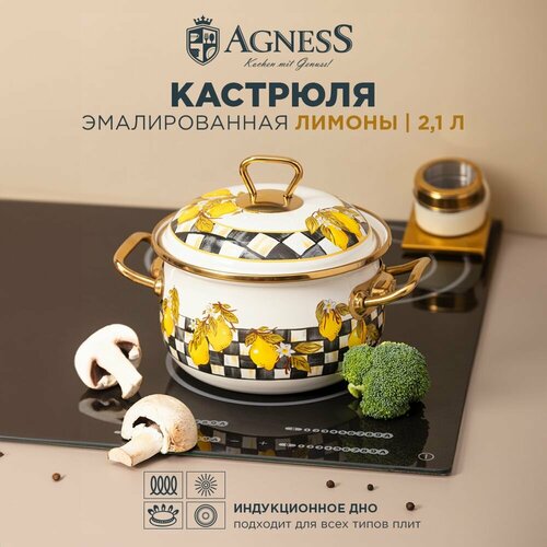 Кастрюля эмалированная с крышкой, лимон 2,1л, диа.16см подходит для индукцион.пл Agness (176725)