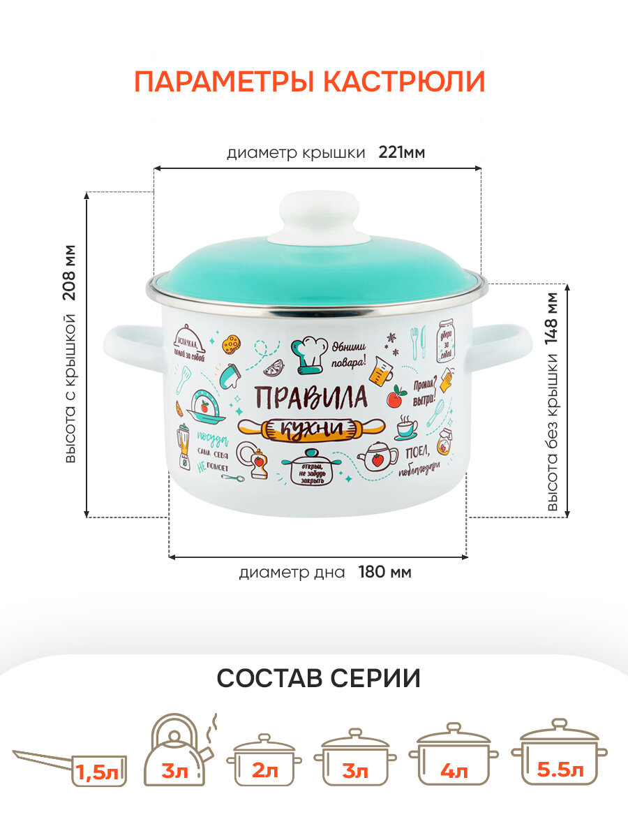 Купить Кастрюля эмалированная с крышкой Правила кухни 5,5л ТМ Appetite с доставкой по всей России. Кастрюля эмалированная с крышкой Правила кухни 5,5л ТМ Appetite: сравнение цен, характеристики, фото, актуальное наличие и цены.