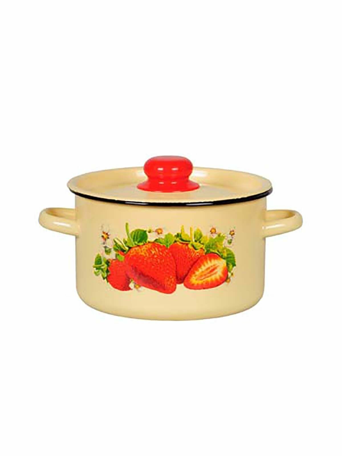 Купить Кастрюля эмалированная СтальКлубника садовая, с крышкой, 1,5 л с доставкой по всей России.