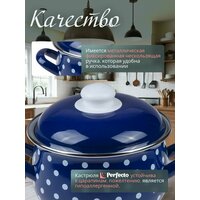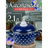 Купить Кастрюля эмалированная стальная с крышкой 2,1 л PERFECTO LINEA Горошек синий (50-600921) с доставкой по всей России.