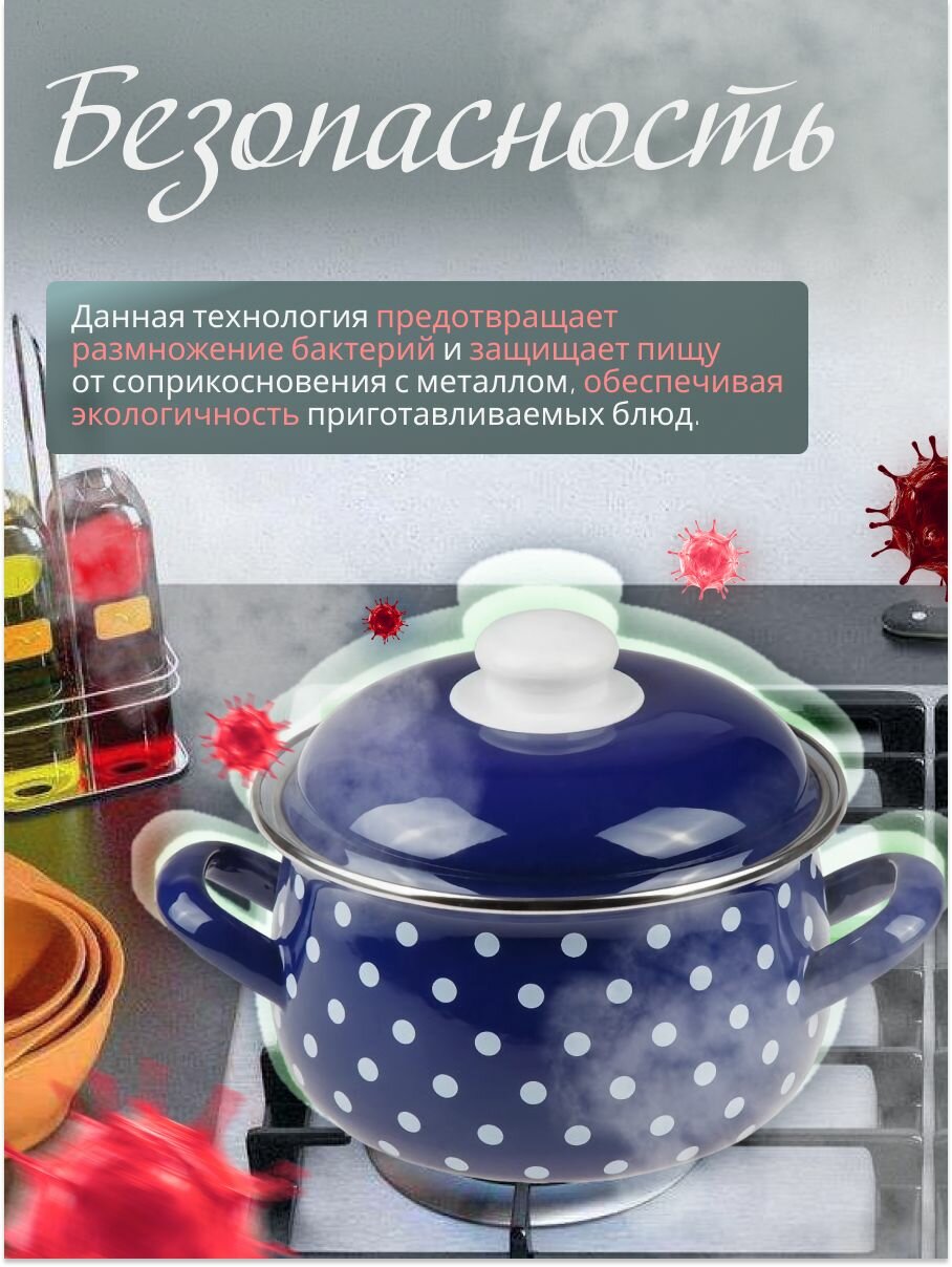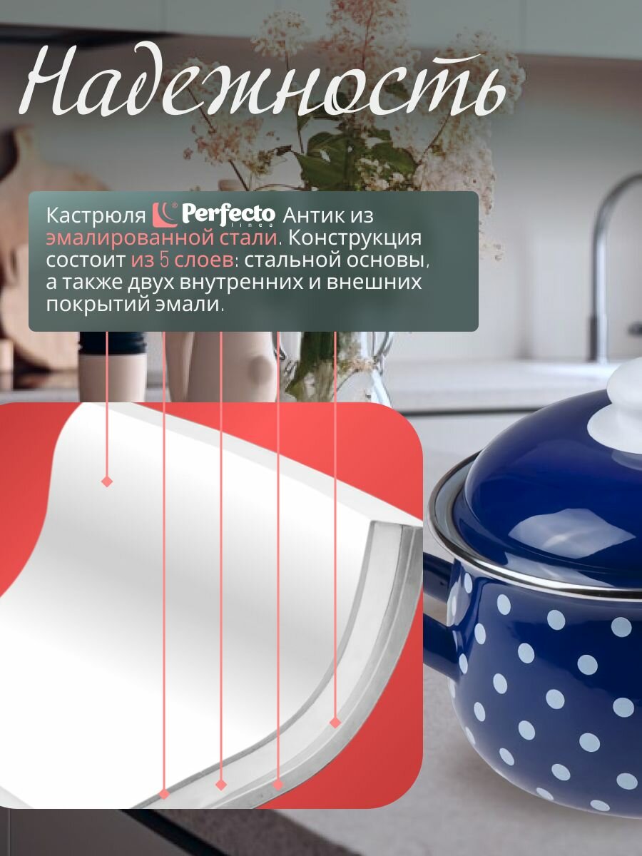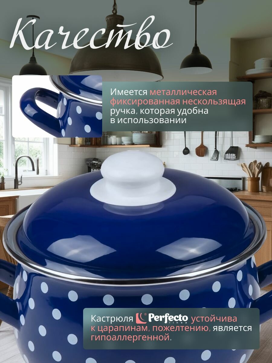 Кастрюля эмалированная стальная с крышкой 2,1 л PERFECTO LINEA Горошек синий (50-600921): сравнение цен, характеристики, фото, актуальное наличие и цены.