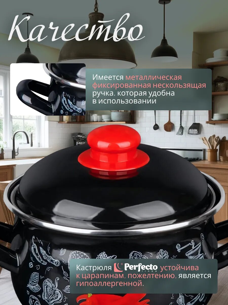 Купить Кастрюля эмалированная стальная с крышкой 2,8 л PERFECTO LINEA Перчик (50-367828) с доставкой по всей России.