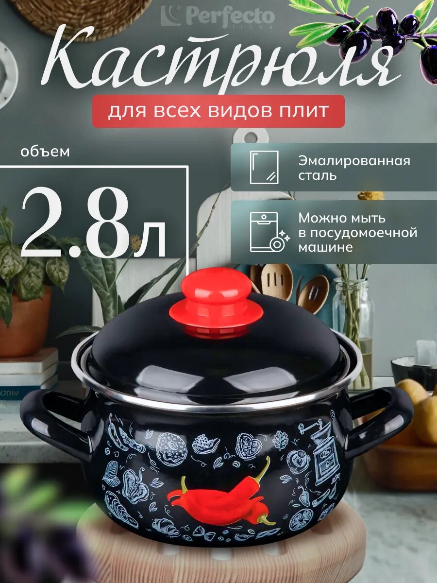 Кастрюля эмалированная стальная с крышкой 2,8 л PERFECTO LINEA Перчик (50-367828): сравнение цен, характеристики, фото, актуальное наличие и цены.