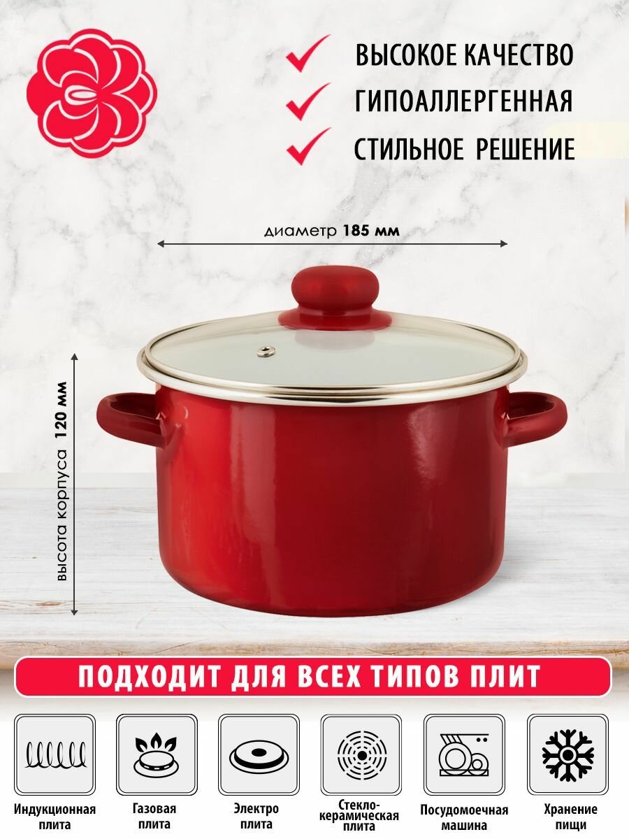 Кастрюля эмалированная Вишневый сорбет 3,0л стеклянная крышка с металлическим ободком: сравнение цен, характеристики, фото, актуальное наличие и цены.