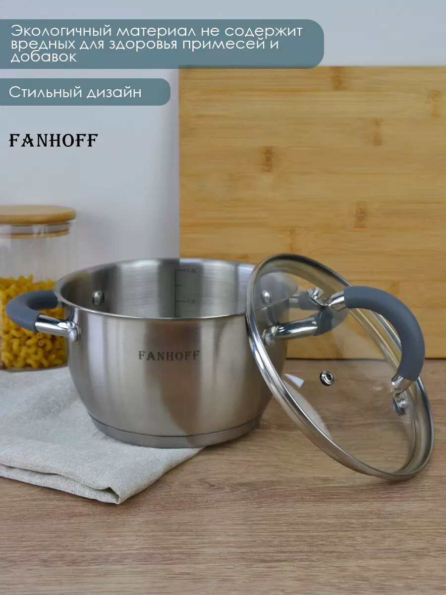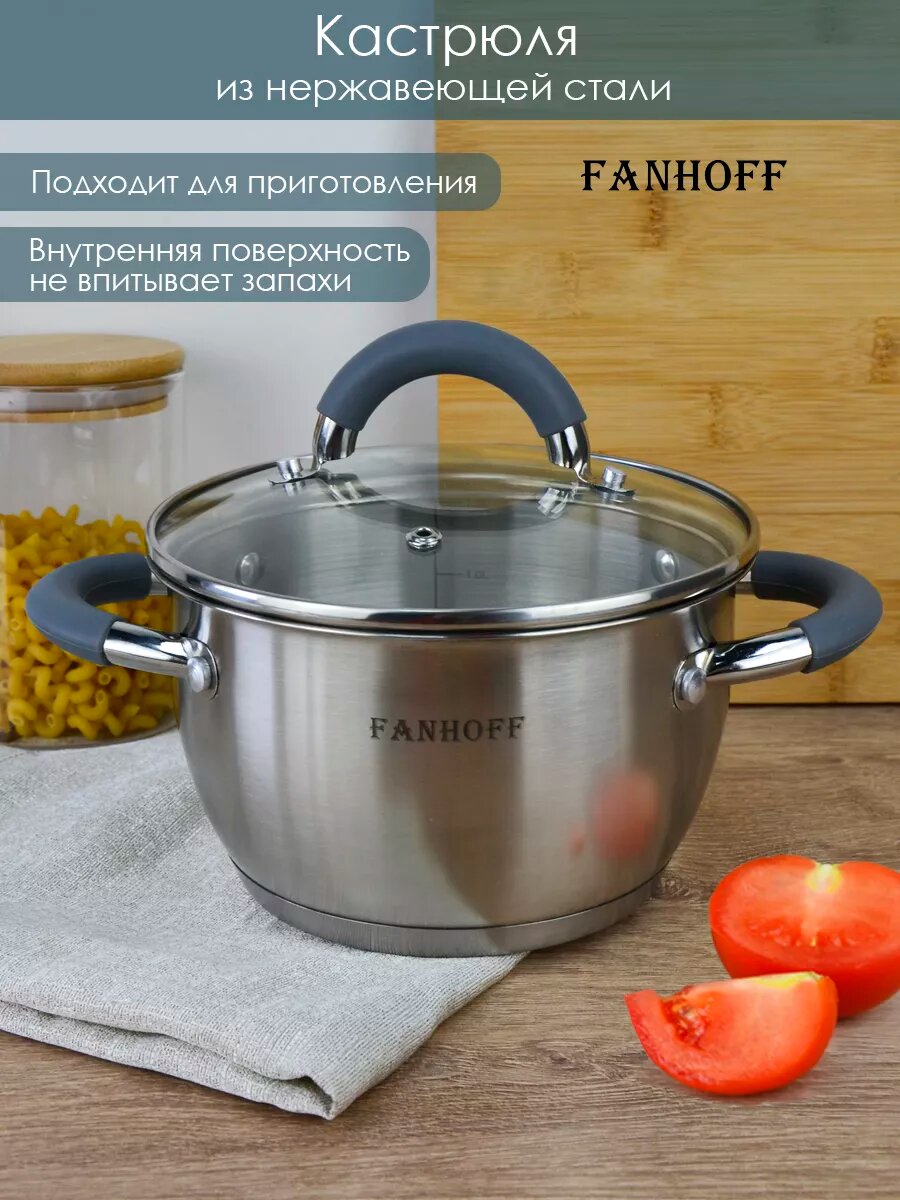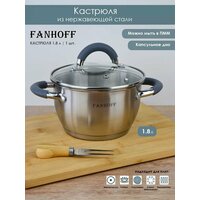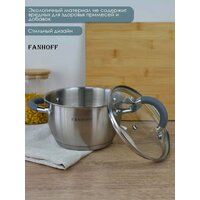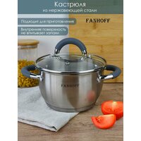 Купить Кастрюля FANHOFF 1,8 л, нержавеющая сталь, стеклянная крышка, для всех видов плит с доставкой по всей России.