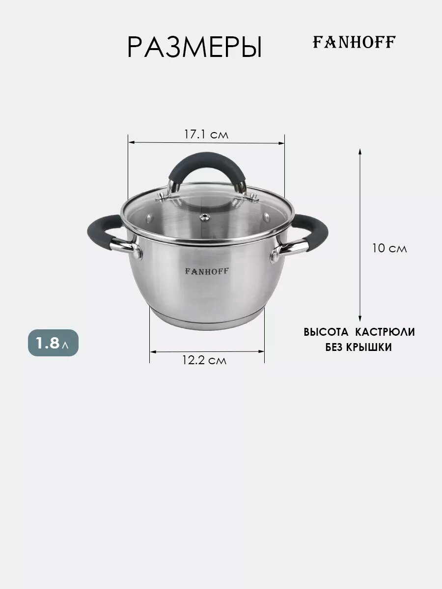 Кастрюля FANHOFF 1,8 л, нержавеющая сталь, стеклянная крышка, для всех видов плит: сравнение цен, характеристики, фото, актуальное наличие и цены.